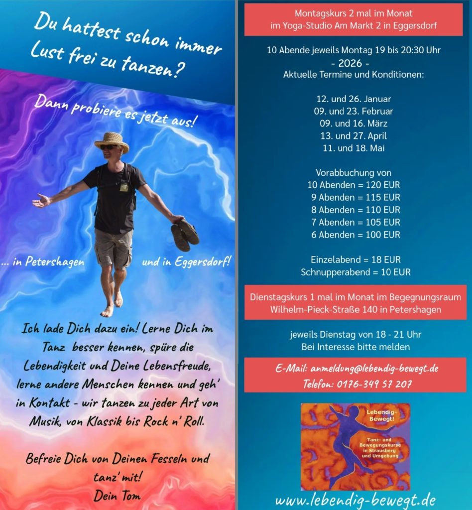 Wir tanzen weiter – auch in 2026! Los geht es mit einem Zehnerkurs von Januar bis Mai 2026.